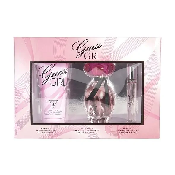 The Guess Girl gift set includes a 3.4 oz Eau de Toilette Spray, a 6.7 oz Body Lotion, and a 0.5 oz mini Eau de Toilette Spray, perfect for a complete fragrance experience. This feminine and flirty scent opens with sparkling notes of raspberry, melon, and bergamot, followed by a captivating floral heart of acacia, lily, and orchid, before settling into a warm base of vanilla and sandalwood. The body lotion hydrates the skin while enhancing the fragrance, and the mini spray is perfect for on-the-go touch-ups, keeping you fresh and confident all day.