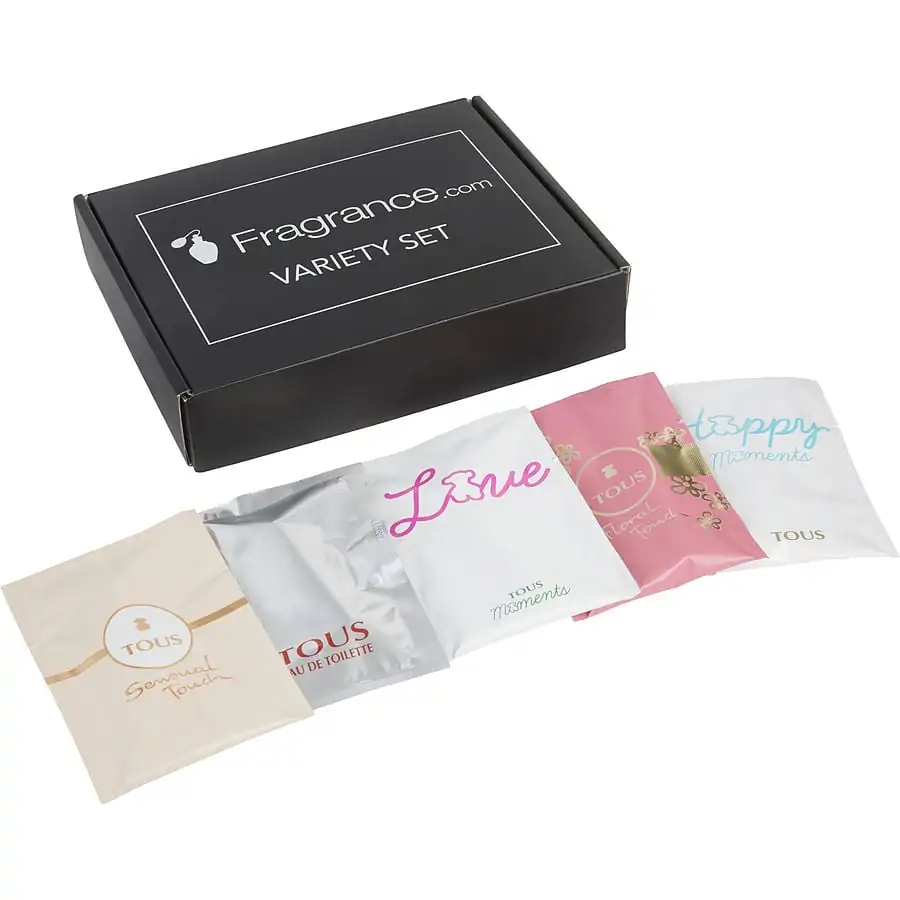 The Tous Variety 5 Piece Vial Set is a delightful collection of fragrances, offering a diverse range of scents to suit any mood or occasion. This set includes Tous Floral Touch, Tous Happy Moments, Tous Love, Tous Sensual Touch, and Tous, each presented in convenient vial sizes for easy travel or sampling. From the romantic floral notes to the warm and sensual accords, this collection provides a perfect introduction to the elegant and playful world of Tous perfumes.