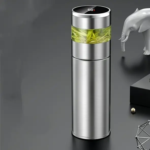 450ml Stainless Steel Vacuum Insulated Leak-proof Tea Filter Water Bottle with Digital Temp Display - Perfect for Outdoor, Travel