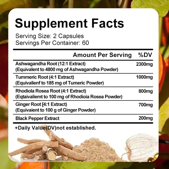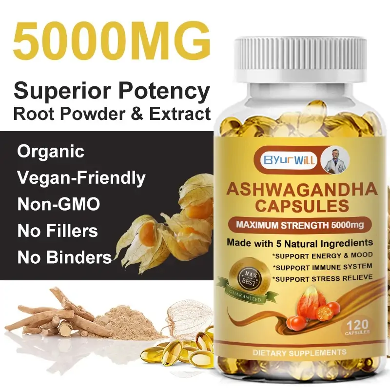 - Ashwagandha + 5000mg helps maintain a healthy stress response, maintains healthy cortisol levels, and promotes positive emotions and brain memory.