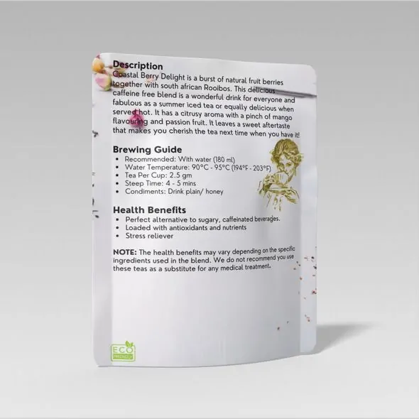 Indulge in the refreshing and vibrant flavours of our Coastal Berry Delight tea. This exquisite blend offers a delightful escape with its citrusy aroma, bright mango flavouring, and a hint of exotic passion fruit, all culminating in a wonderfully sweet aftertaste. It's not just a treat for your taste buds; it's also an organic health & beauty product designed to invigorate your senses and support your well-being.