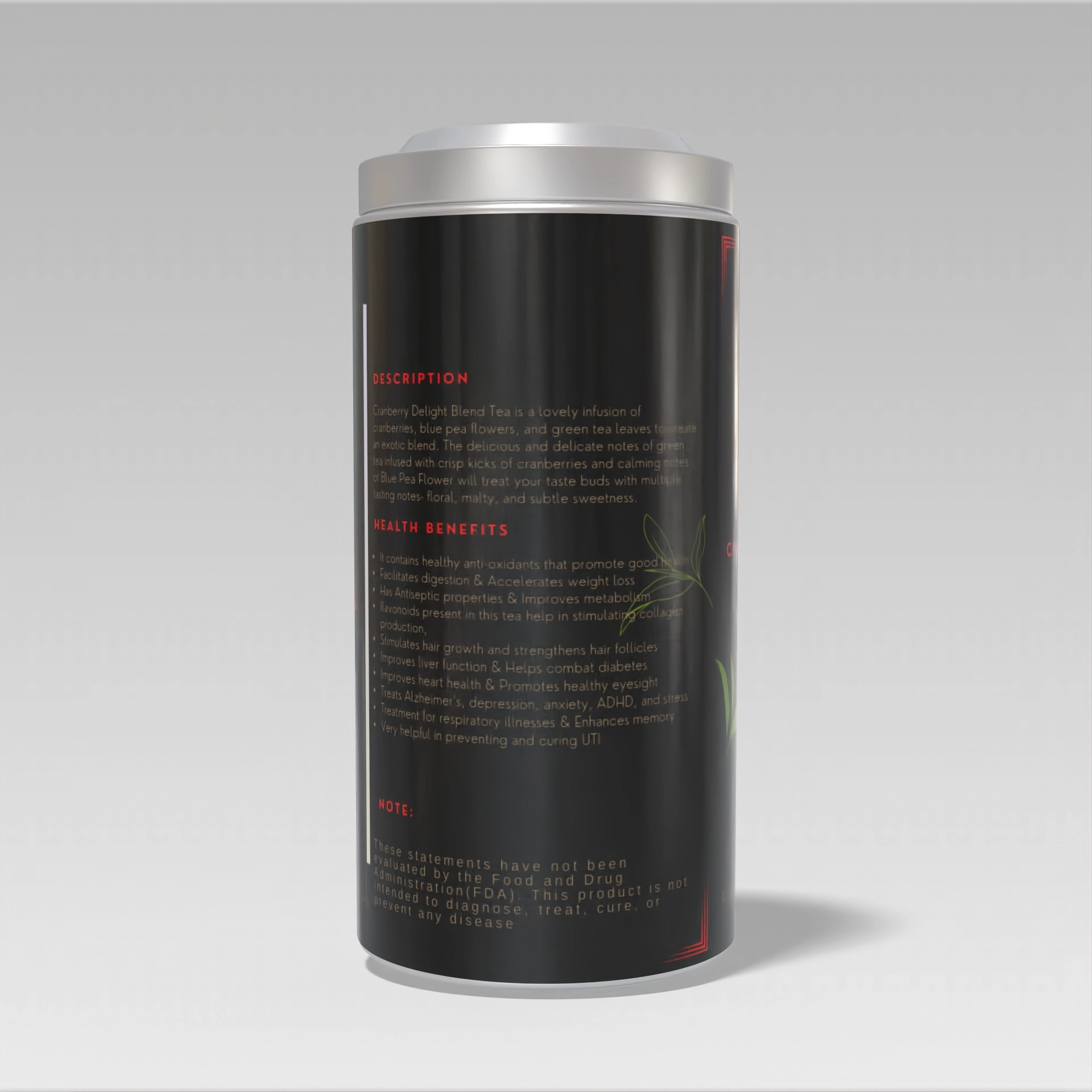 • Tasting Notes: A tangy and refreshing blend with floral, malty, and subtly sweet undertones from cranberries, blue pea flowers, and green tea.