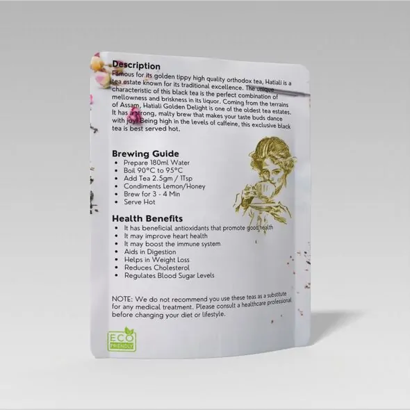 With 20 servings per 50g pack (available in both convenient pouches and elegant tins), Hatiali Gold Bliss Black Tea is your ideal companion for a sophisticated and health-conscious tea experience. Its unique flavour profile and numerous benefits make it a delightful addition to your daily routine. Take advantage of our quantity discounts to stock up on this exquisite tea!