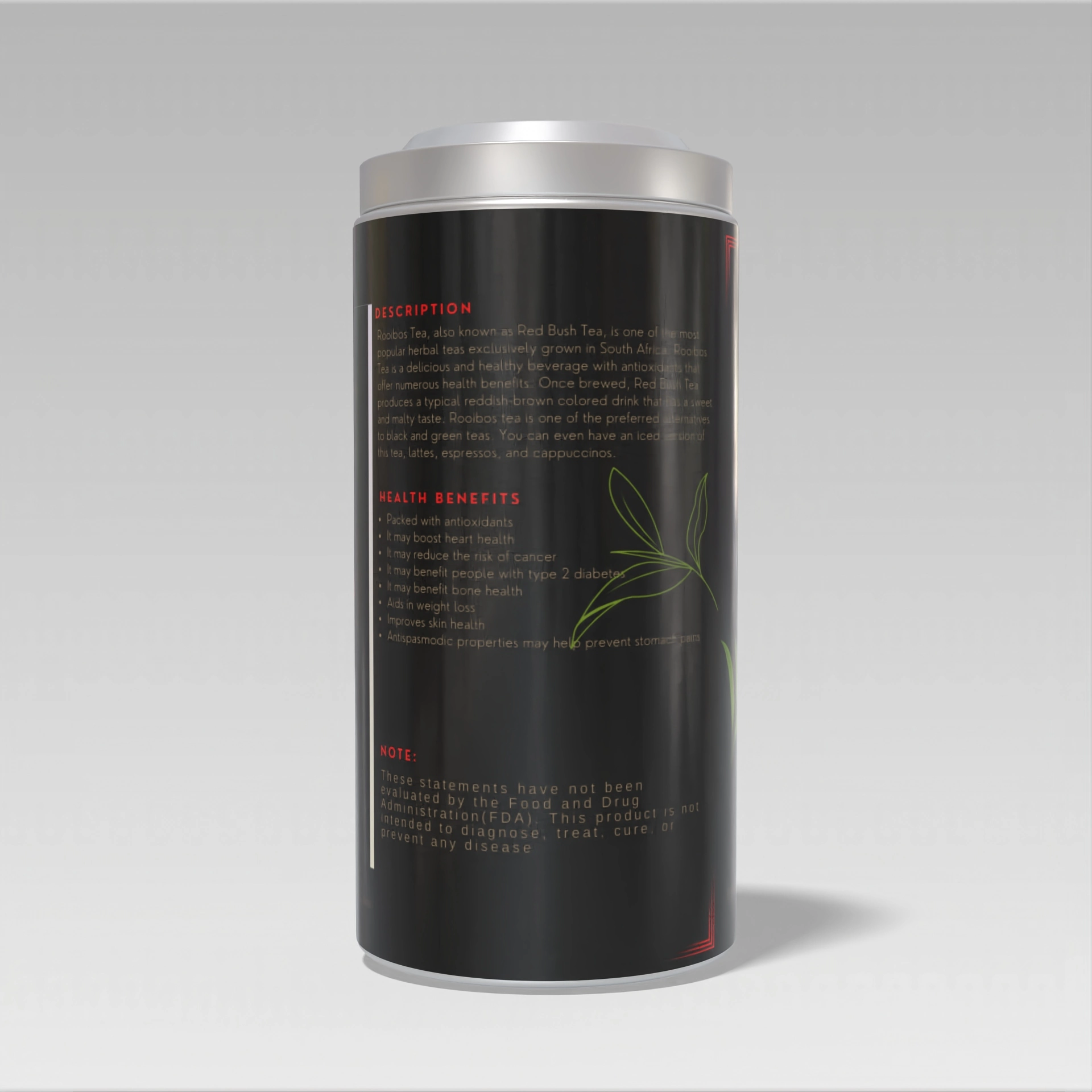Rooibos Tea, also known as Red Bush Tea, is one of the most popular herbal teas exclusively grown in South Africa. Rooibos Tea is a delicious and healthy beverage with antioxidants that offer numerous health benefits. Once brewed, Red Bush Tea produces a typical reddish-brown colored drink that has a sweet and malty taste. Rooibos tea is one of the preferred alternatives to black and green teas. You can even have an iced version of this tea, lattes, espressos, and cappuccinos.