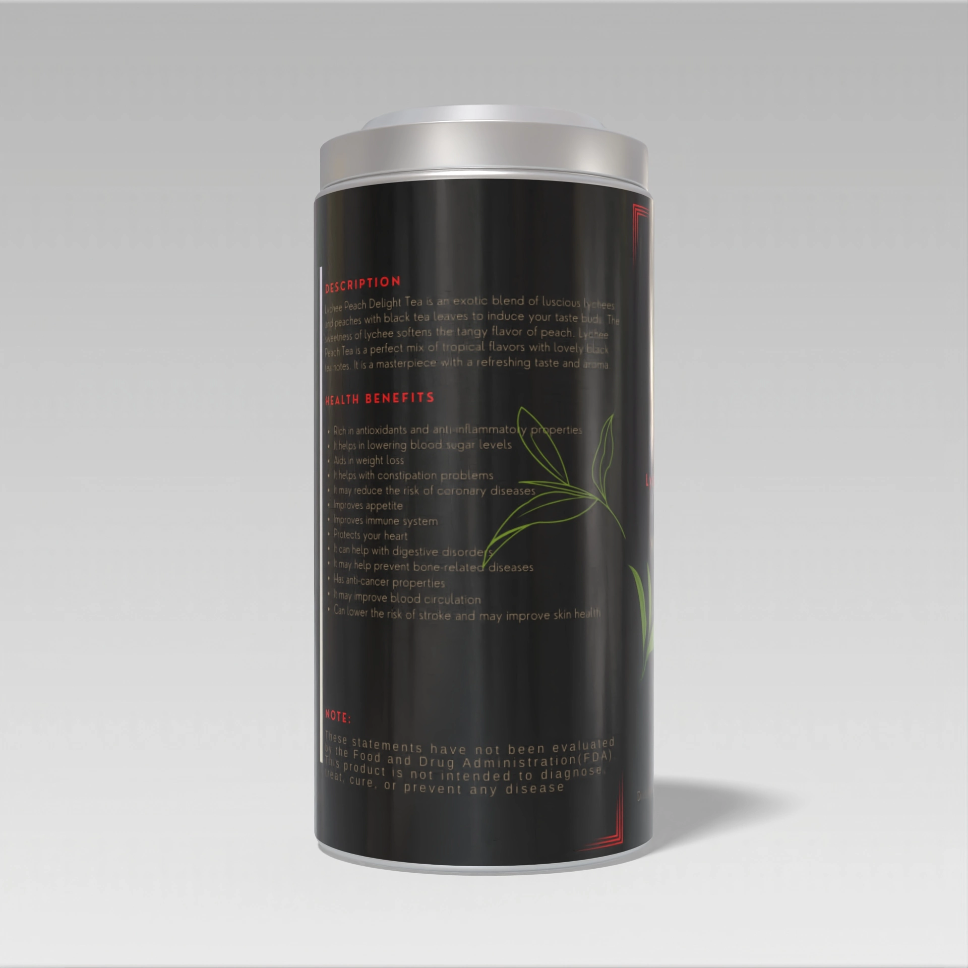 Dive into the delicious and fragrant world of Peachy Lychee Breeze! This enchanting iced tea is a masterpiece of flavour, blending the classic, bold notes of Darjeeling Fanning tea with the sweet, juicy taste of peach and the exotic, delicate essence of lychee. The addition of fragrant red rose petals and naturally sweet stevia leaves creates a low-calorie, guilt-free drink that will transport you to a blissful state of summer.