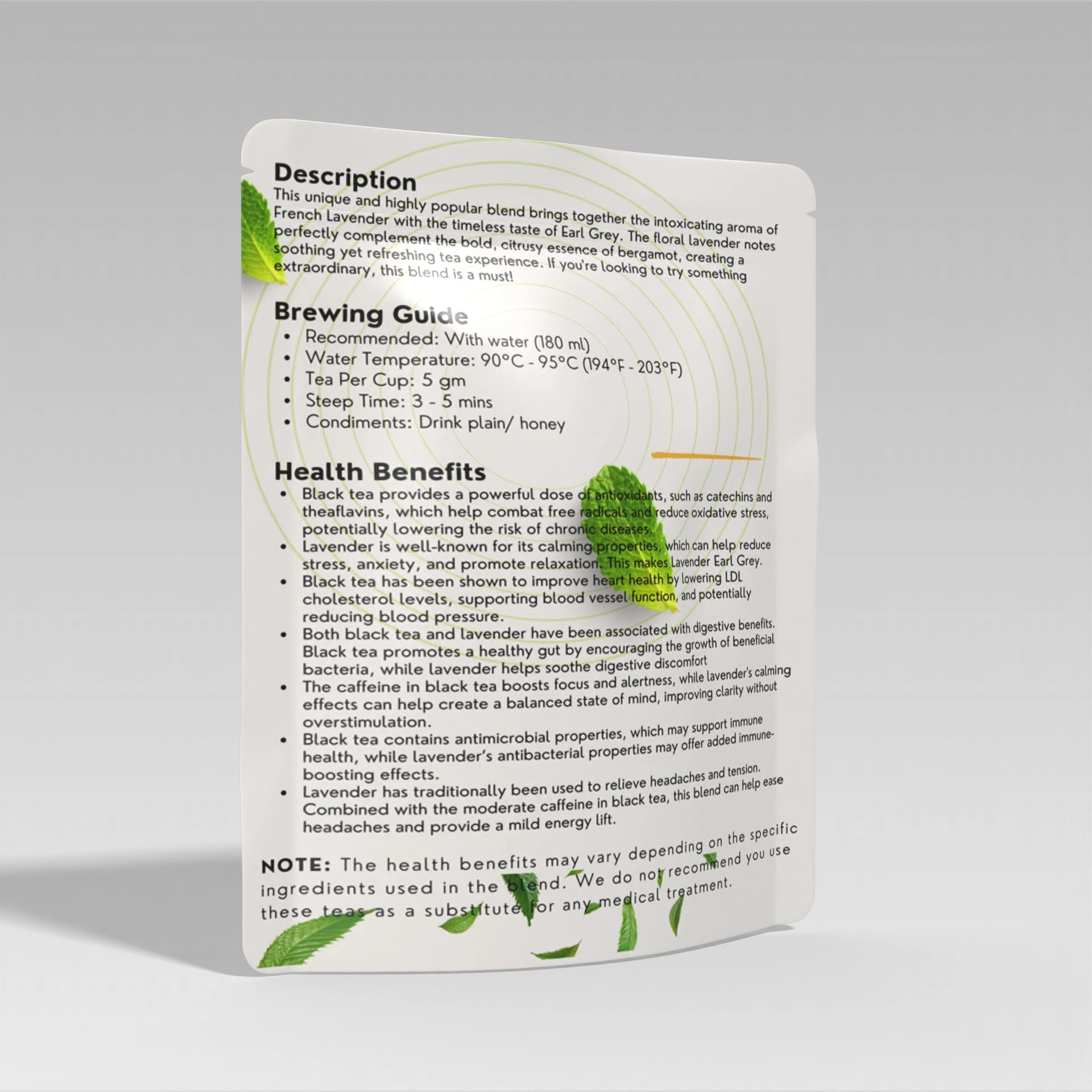 • Premium Ingredients: Made with high-quality black tea, natural bergamot oil, and fragrant lavender petals.