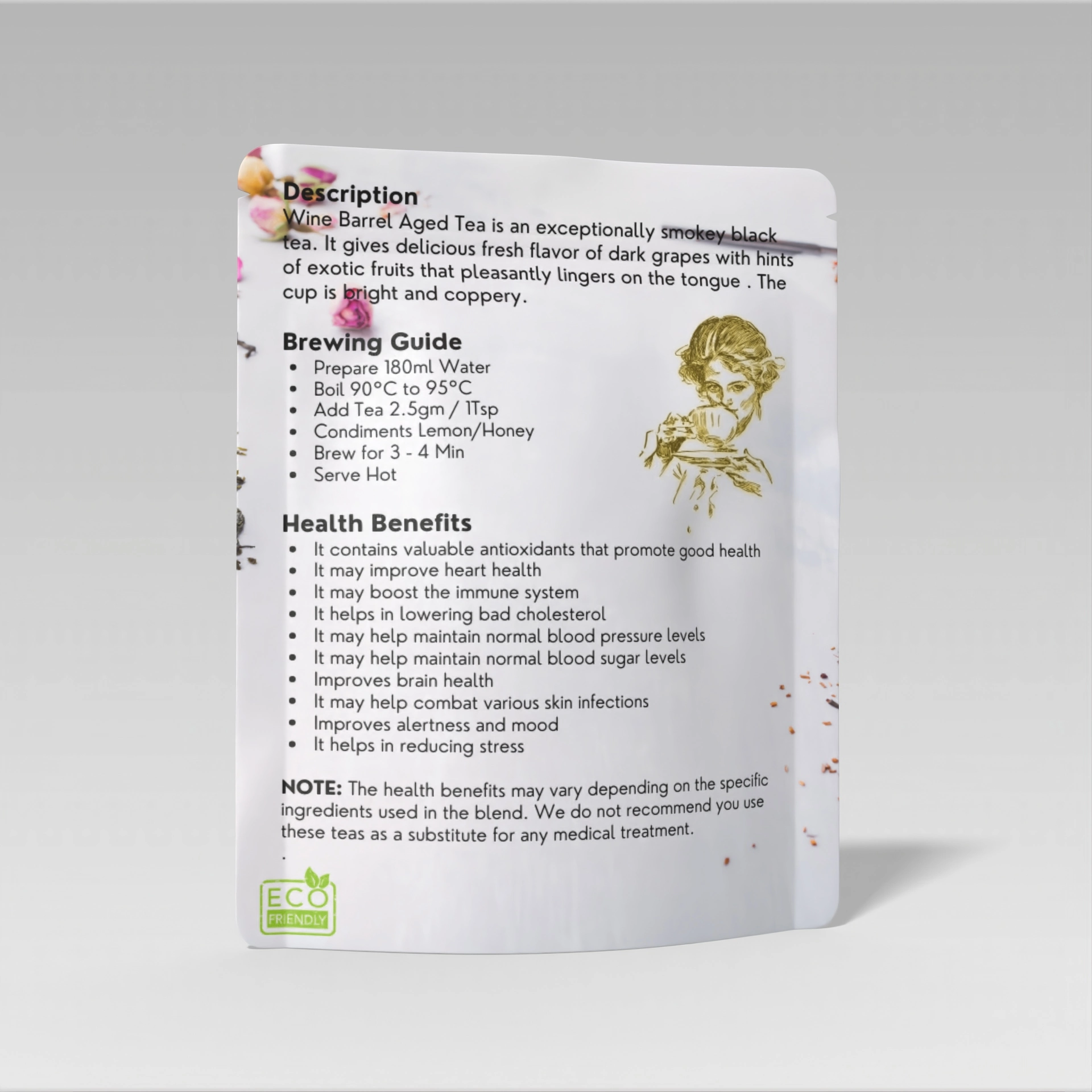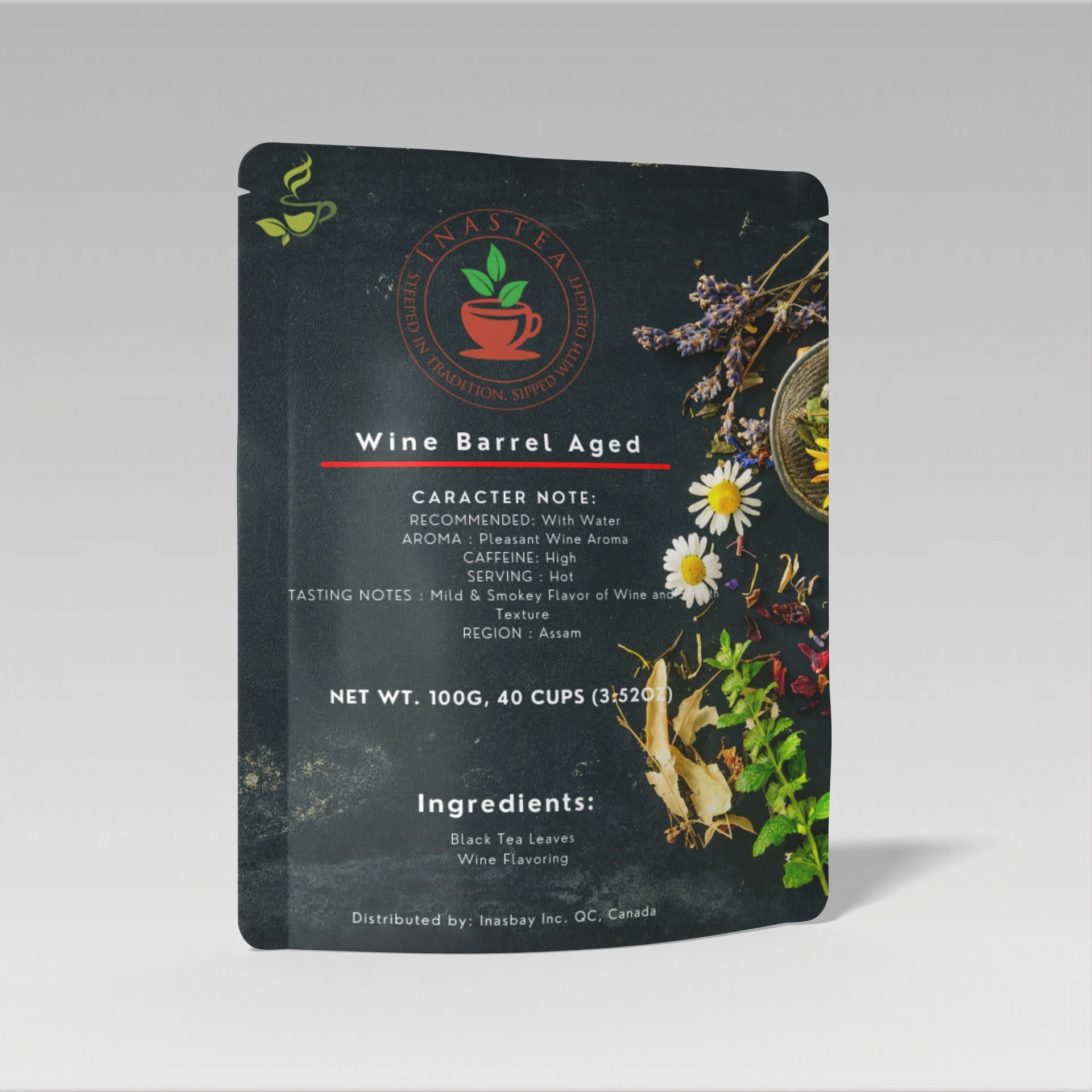 Experience the sophistication of our Wine Barrel Aged Tea, a truly unique blend that marries premium black tea with a natural, non-alcoholic wine flavouring. This innovative infusion captures the complex characteristics of both wine and tea, offering a delightful aroma and flavour with delicate hints of grapes and exotic fruits. It's the perfect choice for those who appreciate the essence of wine without the alcohol.